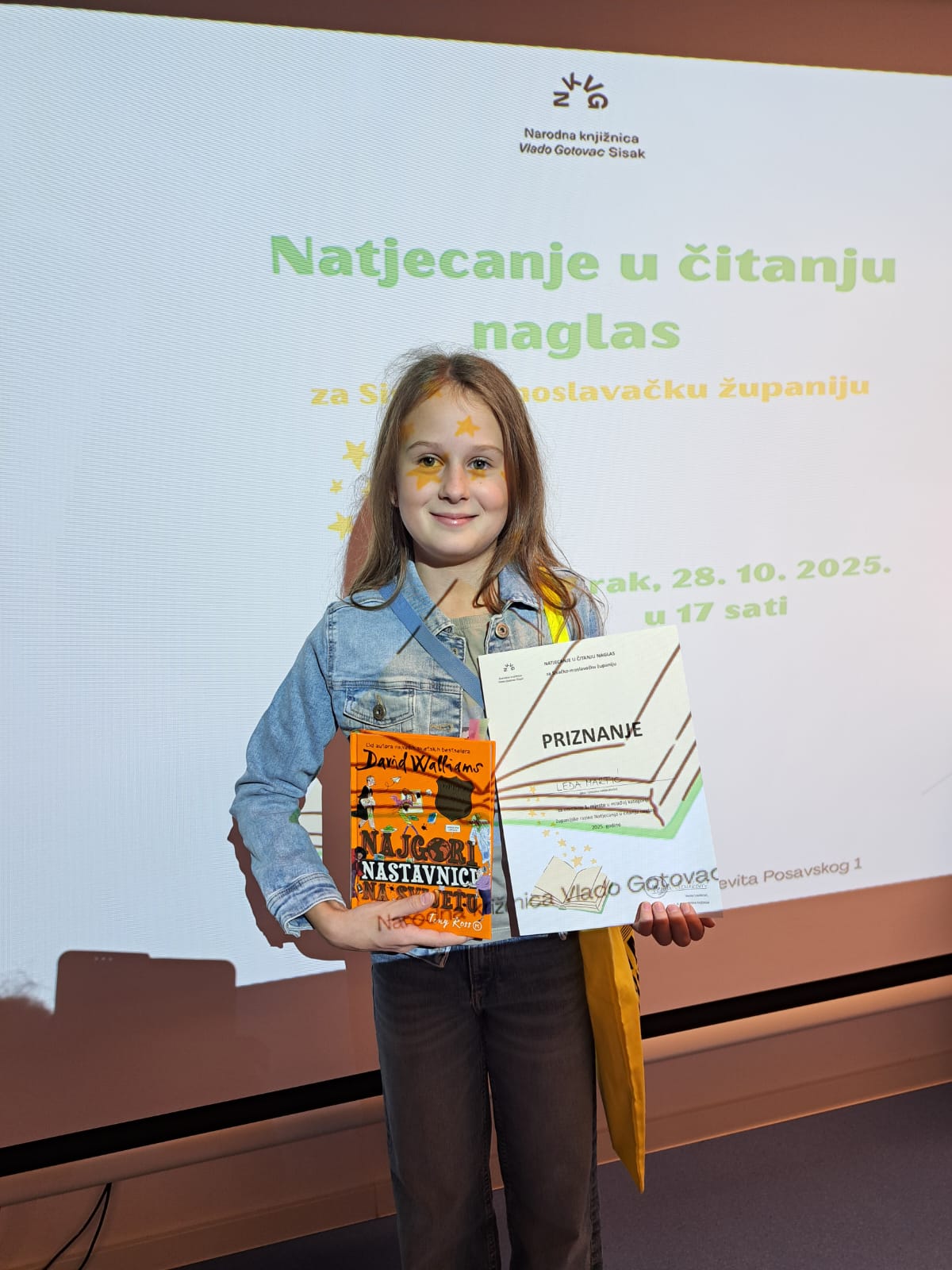 Našu školu u mlađoj kategoriji predstavljala je učenica 6.b razreda Leda Martić. Čitala je ulomak iz knjige Najgori nastavnici na svijetu (David Walliams). Prosudbena komisija odlučila je da je upravo naša Leda pobjednica u mlađoj kategoriji. Drugo mjesto u mlađoj kategoriji osvojila je Paula Turas, a treće Dario Bogdan.