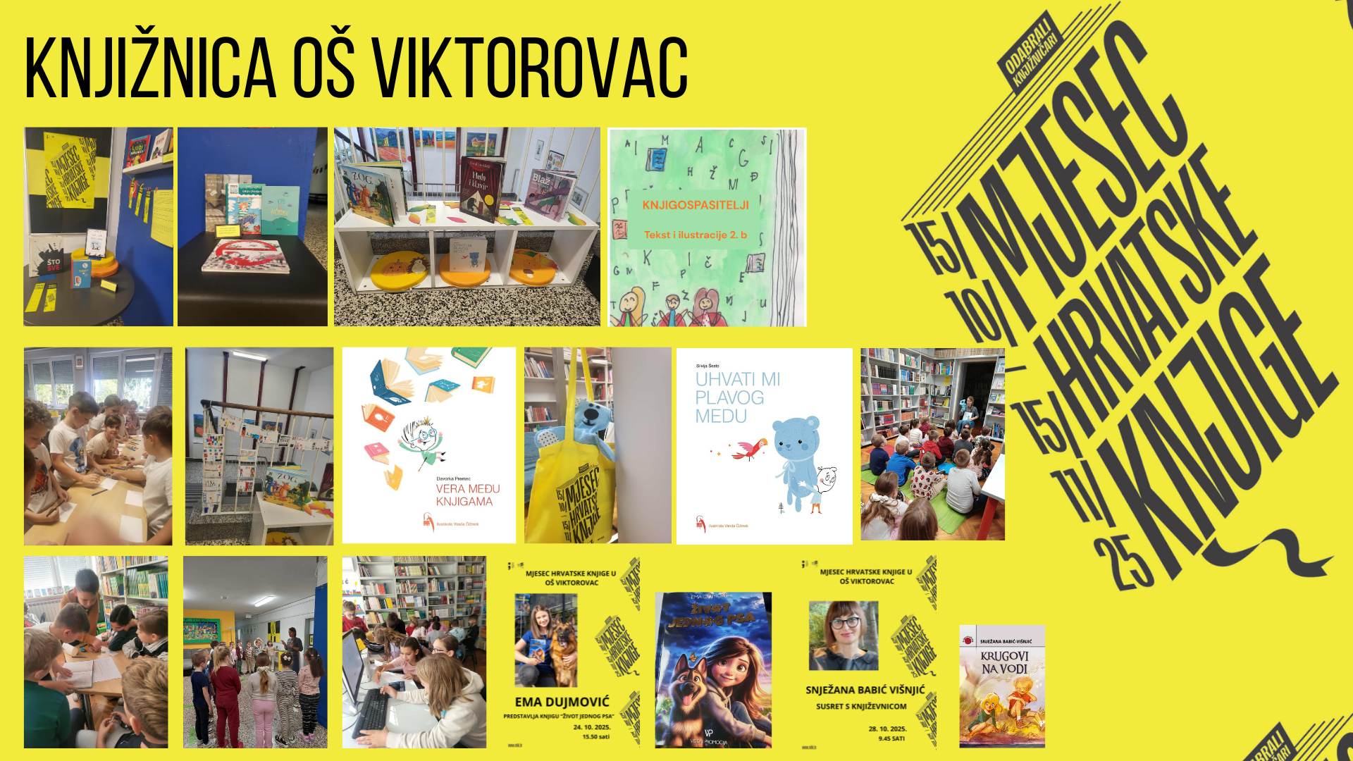 Predstavili smo i digitalnu slikovnicu „Knjigospasitelji“ koju su u okviru projekta „Riječ, slika – slikovnica“ izradili učenici prošlogodišnjeg 2. b, a ovogodišnjeg 3. b razreda. Središnji programi bit će dva književna susreta, prvi s mladom darovitom autoricom Emom Dujmović koja će predstaviti svoj roman „Život jednog psa“, a drugi s književnicom Snježanom Babić Višnjić koja će predstaviti svoj Nagradom „Grigor Vitez“ nagrađen roman „Krugovi na vodi“.