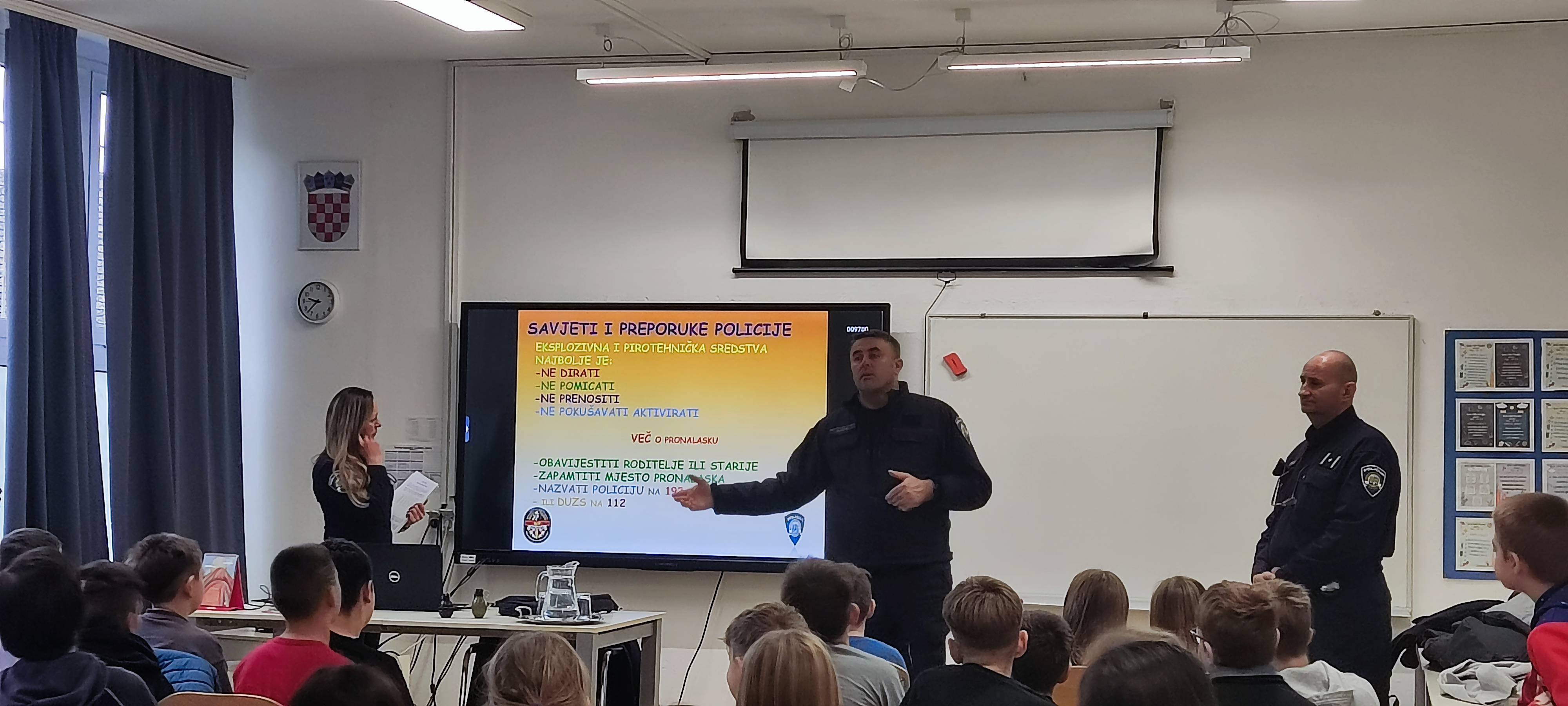 Približavaju se božićni i novogodišnji blagdani, razdoblje u kojem je u porastu korištenje, ali i nezakonita uporaba različitih pirotehničkih sredstava. U srijedu, 12. studenoga 2025., u sklopu preventivnih aktivnosti nacionalne kampanje „Manje oružja, manje tragedija“, policija je učenicima petih razreda održala predavanje pod nazivom „Znam što je, ne diram, opasno je“.