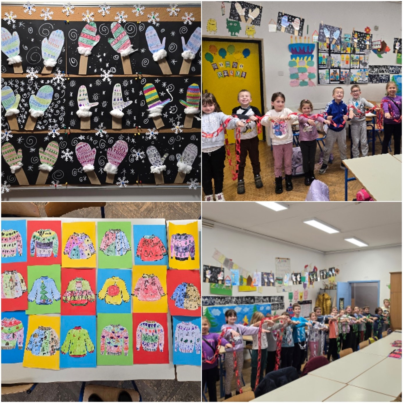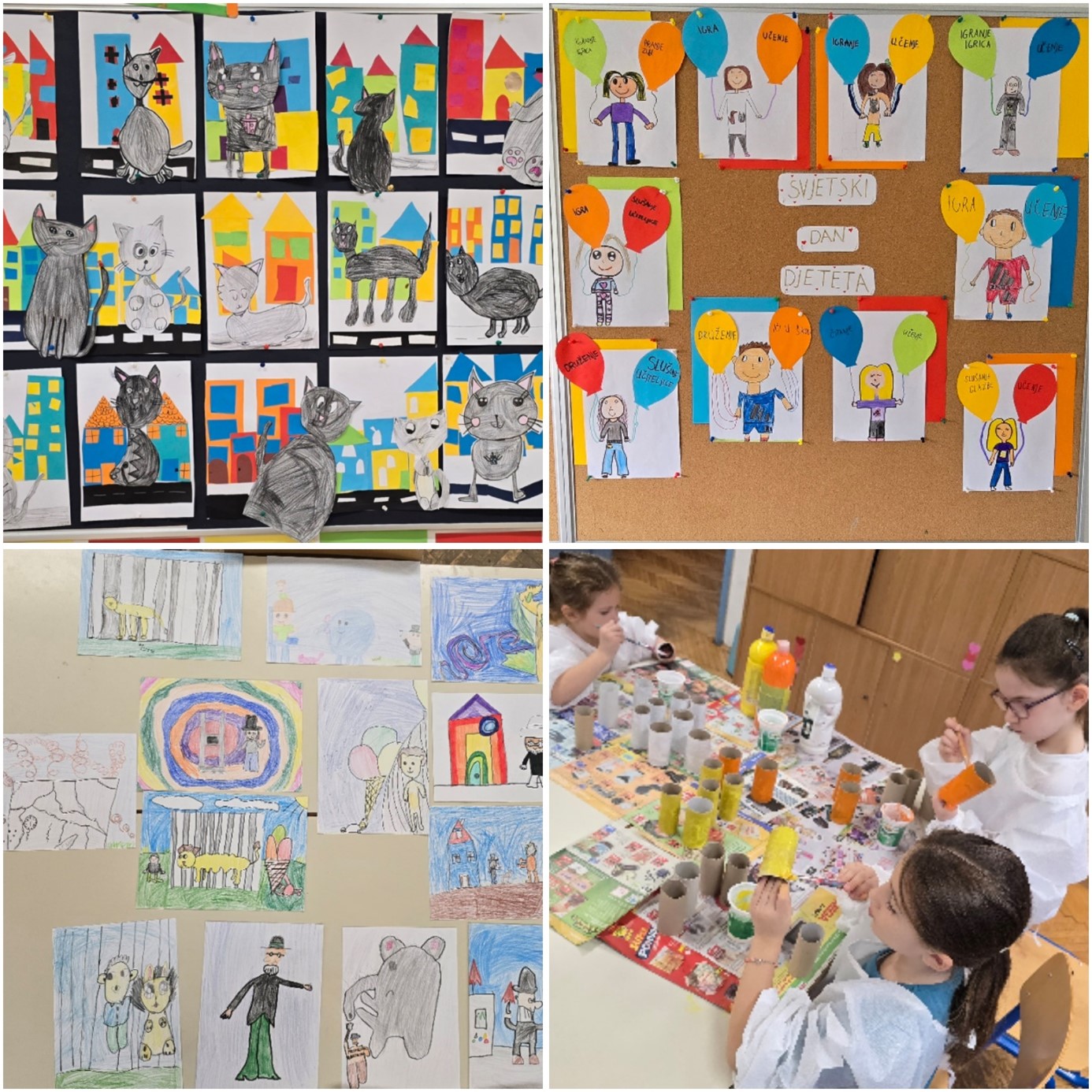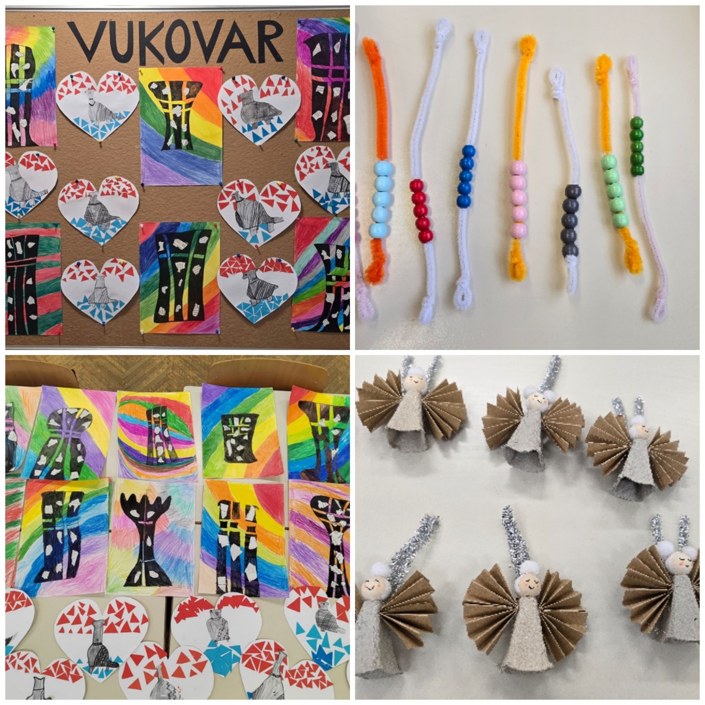 Mjesec studeni učenici 1. i 3. razreda produženog boravka obilježili su mnogim raznolikim i veoma zanimljivim aktivnostima. Na Svjetski dan izumitelja upoznali su mnoge izumitelje te su se okušali i u stvaranju vlastitih izuma. Moramo priznati da bi i sam Profesor Baltazar bio veoma ponosan na maštovitost naših učenika, kao i na kreativnost ilustracija koje su izradili učenici. Povodom Dana sjećanja na žrtvu Vukovara i Škabrnje učenici su dizajnirali motive vukovarskog vodotornja i vučedolske golubice. Na Međunarodni dan djeteta razgovarali su o svojim pravima i obvezama te crtali svoj portret uz koji su odabrali i napisali jedno pravo i jednu obavezu. Učenici su slušali razne priče, čitali ih i razgovarali o njima te su se nakon toga kreativno izražavali. Također su sudjelovali u izradi adventskog vijenca i adventskog kalendara unutar kojeg će ih tijekom cijelog prosinca čekati posebni božićni zadaci. Uz to, zajedno sa svim učenicima škole, izradili su lance od kolaž papira kojim se ukrasila škola.