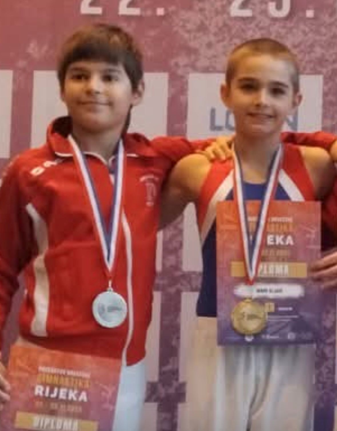 Na Državnom prvenstvu u gimnastici koje je održano u Rijeci 22. studenoga 2025. zlatnu i srebrnu medalju osvojili su učenici naše škole i članovi gimnastičkih klubova iz Petrinje i Siska, Mark Kljaić i Vid Glavinić.