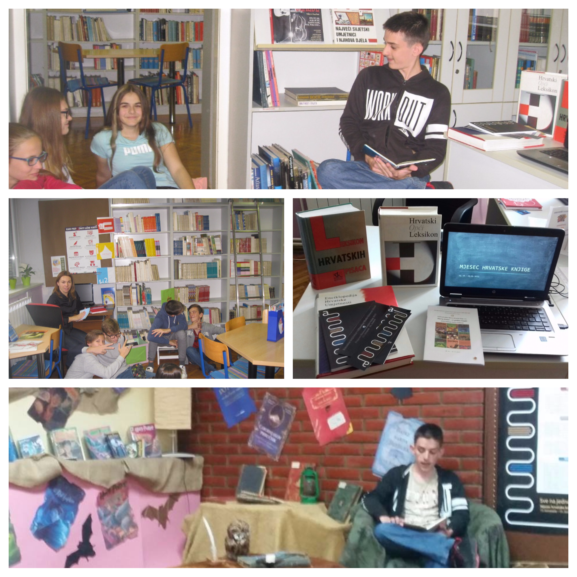 Učenici 8. a i 8. b razreda s učiteljicom Ivanom Rakas posjetili su školsku knjižnicu u Mjesecu hrvatske knjige i to 23. listopada 2017., na dan kada se u cijeloj Republici Hrvatskoj provodi akcija „Danas ti čitam!“ Upoznali su se s novim rasporedom građe u školskoj knjižnici te knjižničnim uslugama kao i programima kojima mogu prisustvovati tijekom Mjeseca hrvatske knjige u svojoj školi te u narodnim knjižnicama u Sisku i Zagrebu.