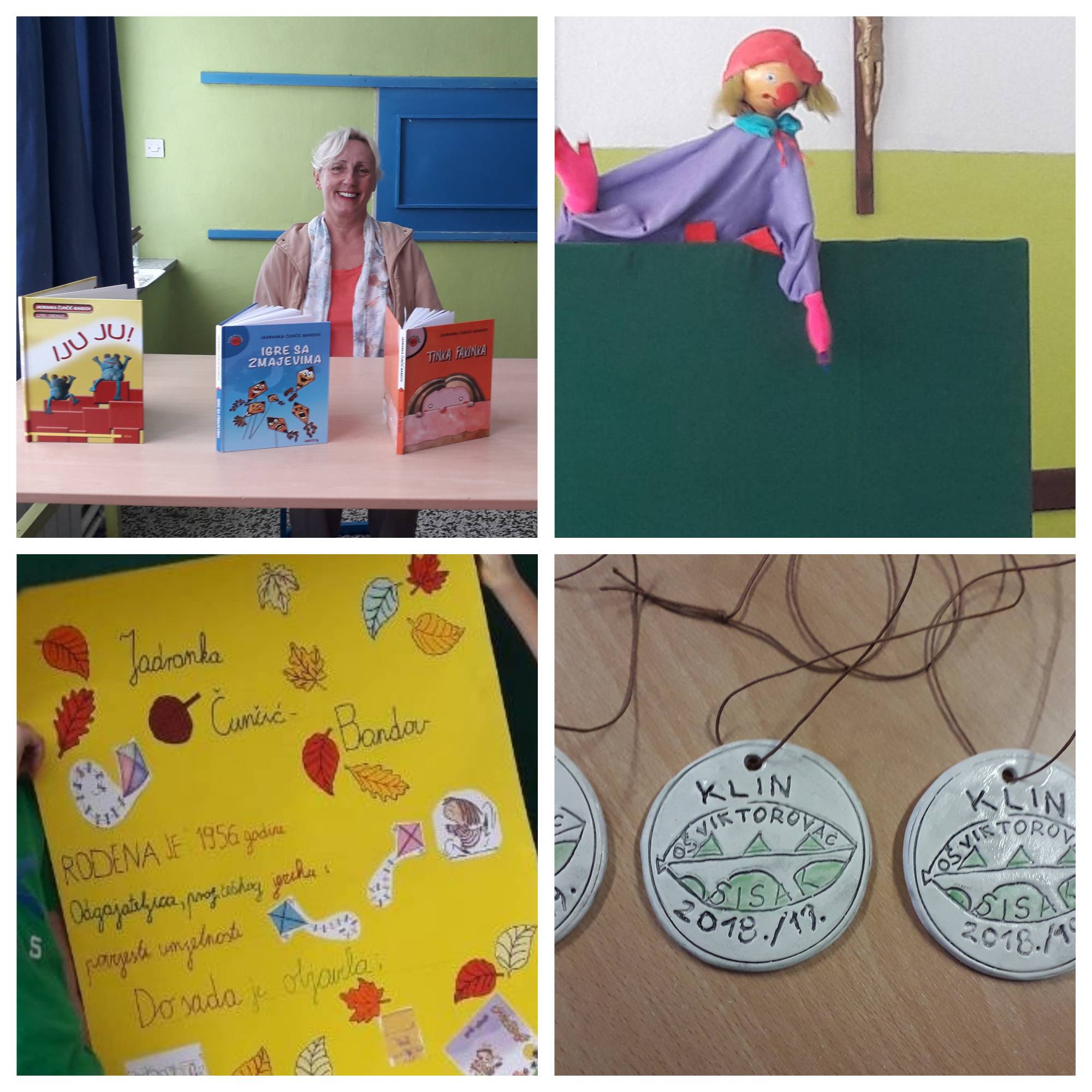 Proglašenjem rezultata Knjižničnog literarnog natječaja KLIN s temom „Lijepo je biti dijete“ započelo je u našoj školi 20. studenoga 2018. obilježavanje Međunarodnog dana djeteta. Učenici 1., 2., a zatim i učenici 3. i 4. razreda sa svojim su učiteljicama pogledali kolaž predstavu književnice i lutkarice Jadranke Čunčić-Bandov kojoj su pripremili i iznenađenje! Učenici 1. b razreda te polaznici Dramske skupine uz pomoć svojih učiteljica Nikoline Strugačevac-Bizjak i Maje Pirc uvježbali su i izveli nekoliko igrokaza te svojom glumačkom vještinom razveselili književnicu.