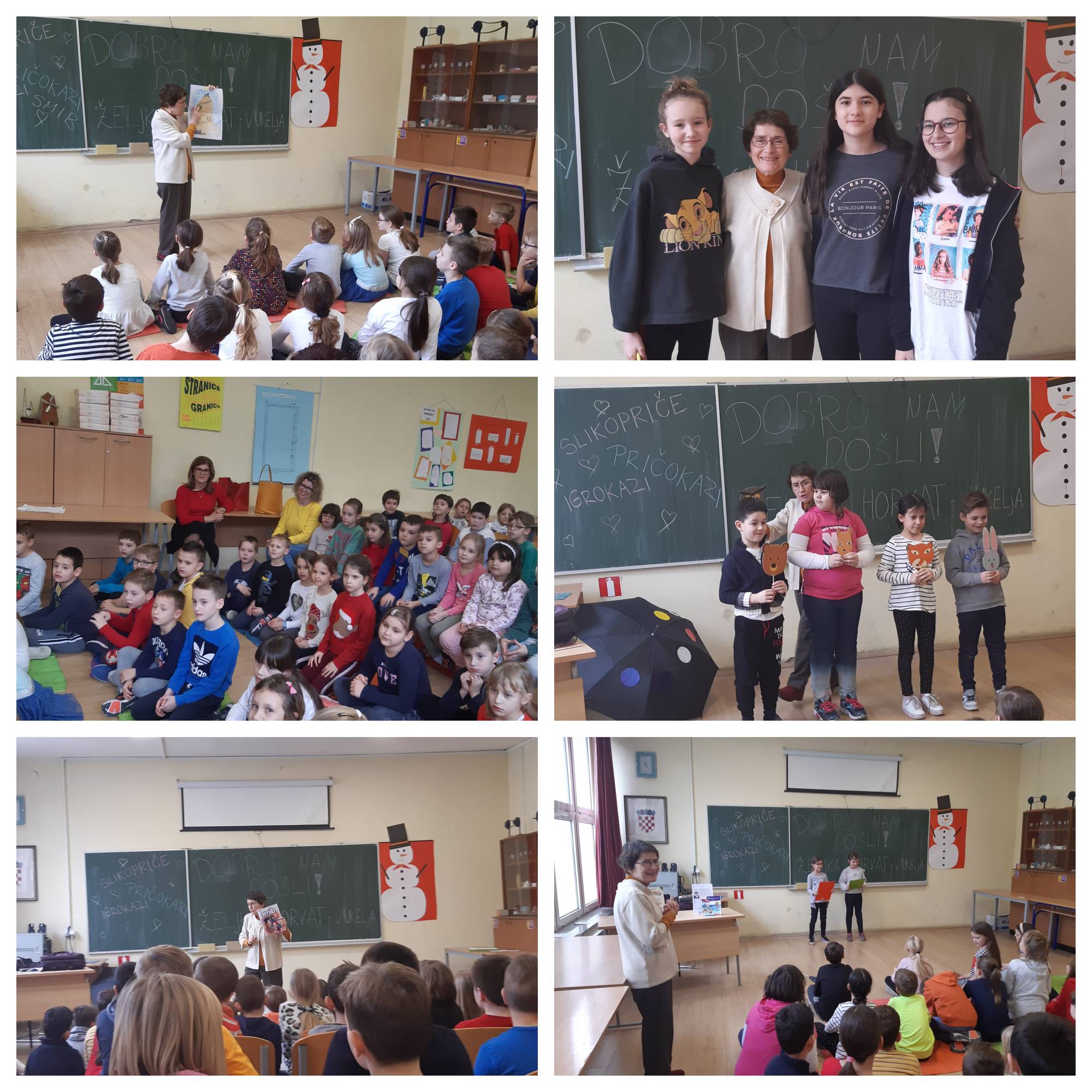 Književnicu su uime škole pozdravili Časopisci, Mia i Marija iz 2. a, a učiteljica Radojka Kozina s učenicima je uvježbala poznati autoričin igrokaz „Reumatični kišobran“. Zadruga VikSi darovala je književnici darak za sjećanje na našu školu, a učenici prvih razreda znakom srca vrednovali su nastup Željke Horvat-Vukelja kao izvrstan.
