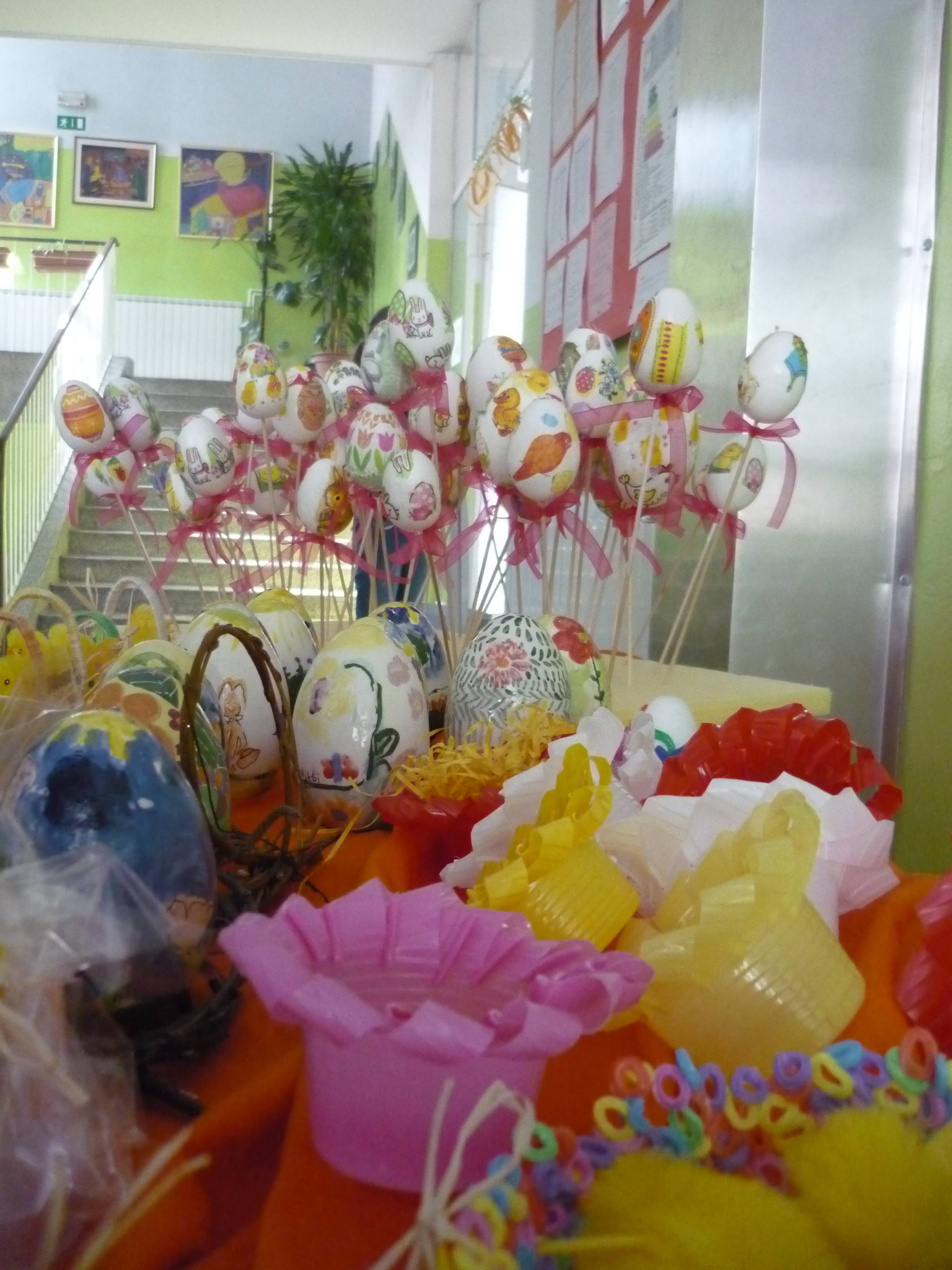 Kreativne ruke mladih zadrugara oplemenile su ulazak u našu školu sa uskrsnim proizvodima. U ponudi se našlo: keramičke pisanice, pisanice izrađene u decoupage tehnici, ukrasne košarice nastale reciklažom plastične mase i tkanjem vune, prirodni sapuni raznih oblika…