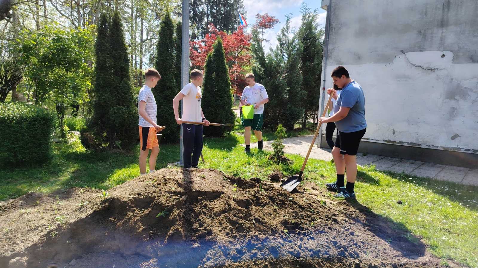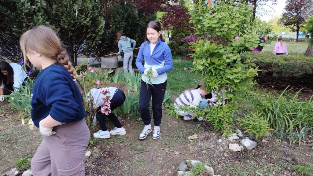 Povodom Dana planeta Zemlje naši učenici su svojim trudom i vrijednim ručicama uljepšali školski okoliš. Učenici koji pohađaju izvannastavnu aktivnost Čuvari prirode su uz pomoć učenika 4.a i 8.b razrednog odjela uređenjem okoliša i sadnjom trajnica obogatili zelene površine, te pokazali koliko je važno brinuti o prirodi i zajednici.