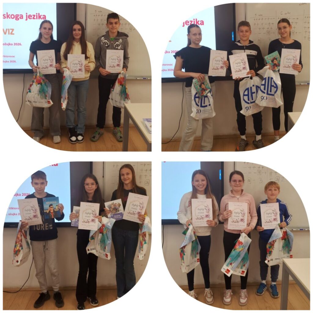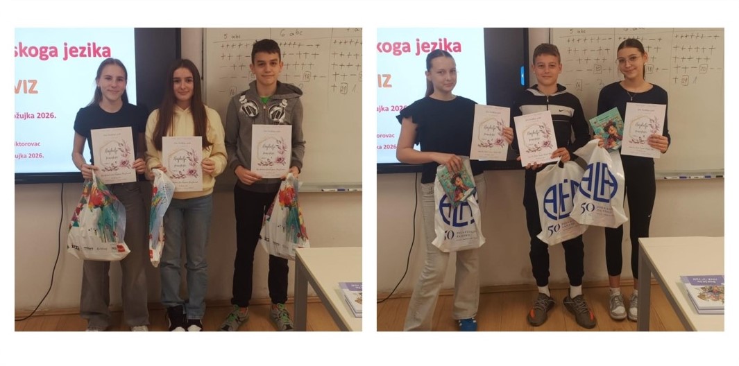 Dane hrvatskoga jezika obilježili smo 12. ožujka 2026. poučnim kvizom znanja kao i prethodnih godina. U kvizu su sudjelovali učenici od 5. do 8. razreda, a pitanja su bila vezana uz poznavanje pravopisa i gramatike hrvatskoga jezika.