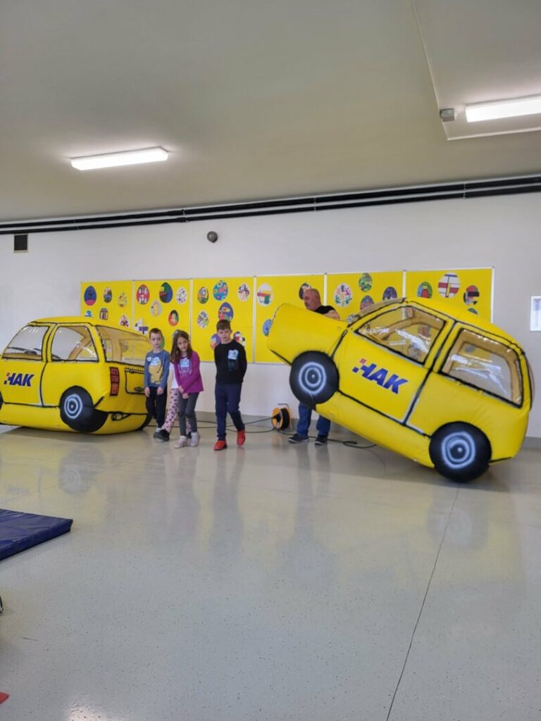 Učenici prvih razreda s učiteljicama Dianom Mesić, Mihaelom Šimunović i Bojanom Štimac sudjelovali su 16. ožujka 2026. u programu „Vidi i klikni“ u organizaciji Hrvatskog autokluba. Cilj je ovog programa učenicima pružiti praktične informacije o sigurnom sudjelovanju u prometu. Zahvaljujući atraktivnim nastavnim sredstvima i pomagalima te iskustvenoj radionici, učenici su mogli kroz igru osvijestiti što znače opasnosti u prometu te kako ih izbjeći. HAK ovim programom nastoji na najmanju moguću mjeru svesti stradanje djece u prometu, a partnere u dostizanju tog cilja vidi u školi, učiteljima i roditeljima kojima se također obraćaju putem bojanke koju je svaki učenik primio na dar: „Važno je da ono što su u ovoj maloj prometnoj školi naučili (…) bude podržano i od obitelji koja mora biti uzor za ponašanje u prometu njihovoj djeci“.
