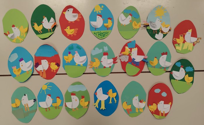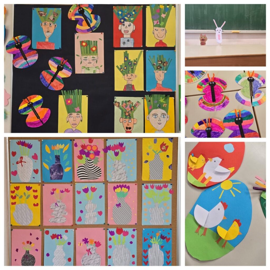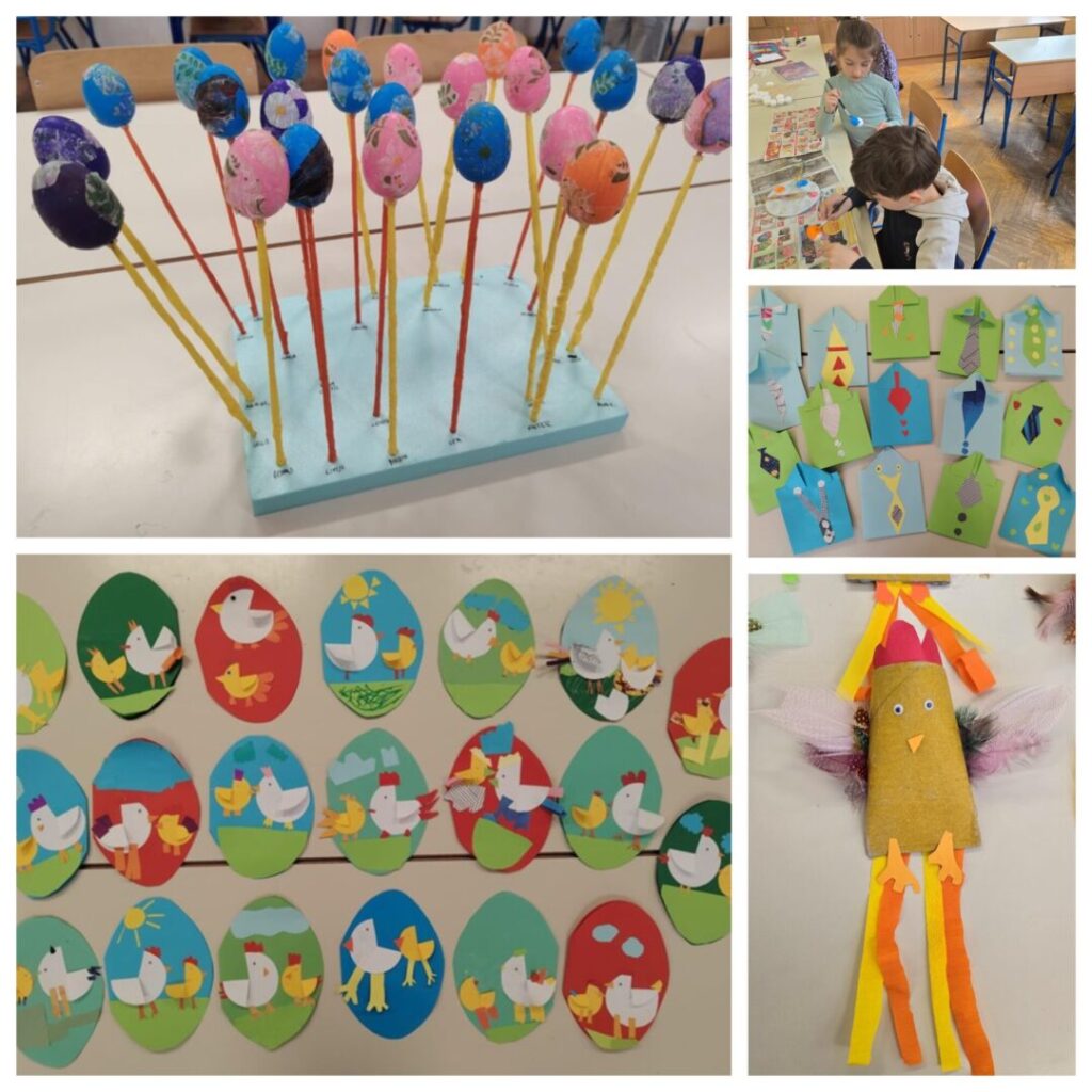 Pripremali su se i za dolazak Uskrsa radeći uskrsne pisanice, zečeve, koke, uskrsne čestitke i lutkice za igrokaz.