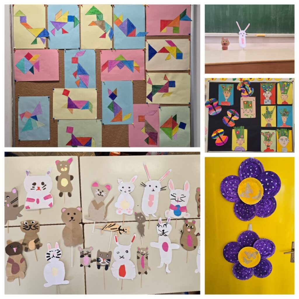 Ožujak je u produženom boravku za učenike 1. i 3. razreda protekao u obilju igre i mnoštvu aktivnosti. Kao i svakog mjeseca učenici su obilježili mnoge važne datume, učili, igrali se i kreativno izražavali. Obilježili su Svjetski dan matematike i okušali se u matematičkim slagalicama (tangrami) s pomoću kojih su stvarali razne životinje. Povodom Dana žena mislili su na svoje majke i bake za koje su izradili bukete te im napisali čestitke.