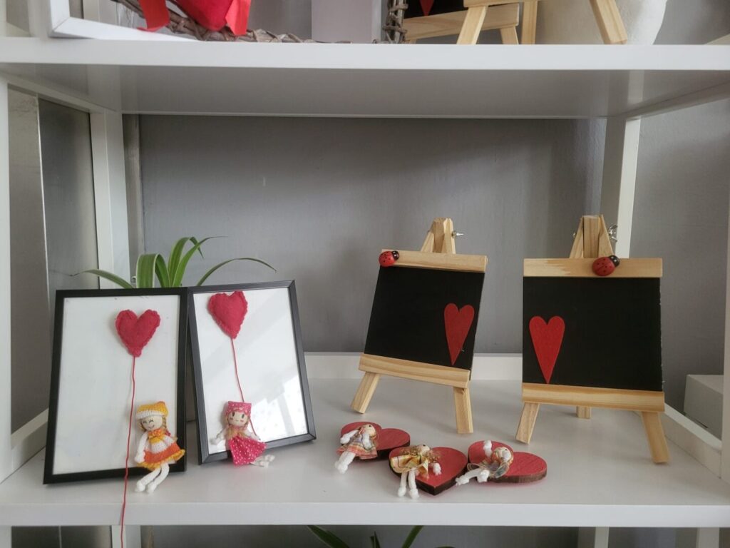 Zadrugari su prostor ispunili ručno izrađenim proizvodima s motivom srca u keramici i platnu. Posjetitelji su mogli razgledati zidne vjenčiće, privjeske za ključeve, magnete, okvire za slike, ukrase na štapiću s motivom srca te male štafelaje s porukama koji su prenosili riječi pažnje, prijateljstva i ljubavi.